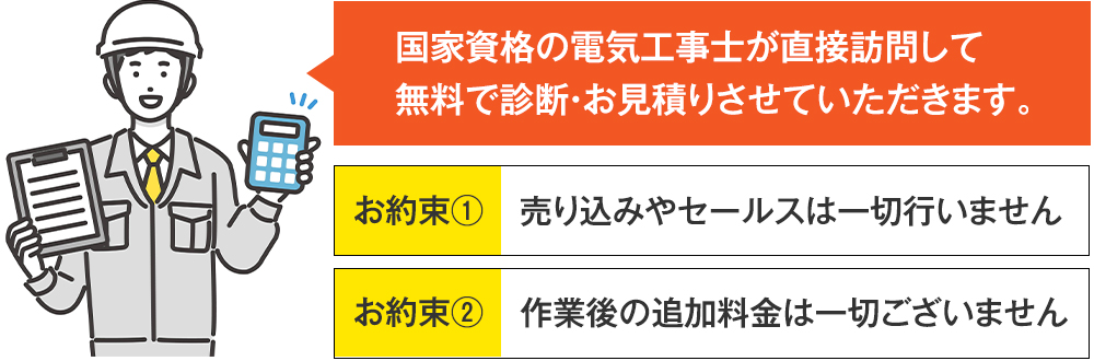 専門知識を持ったスタッフが原因を特定し改善するためのご提案をさせていただきますので、ぜひこの機会にデンパナビの無料点検をご活用ください。