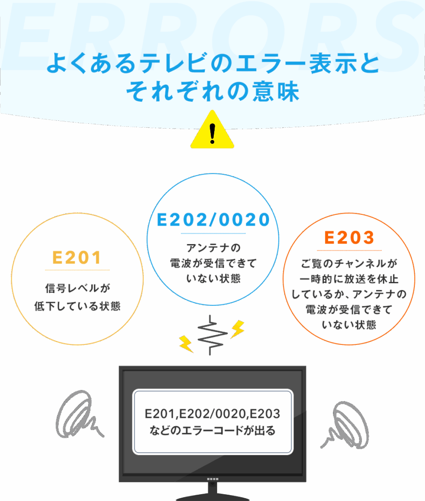 テレビを映すための電波が、何らかの要因でテレビに届いていないという意味のエラーコードです。