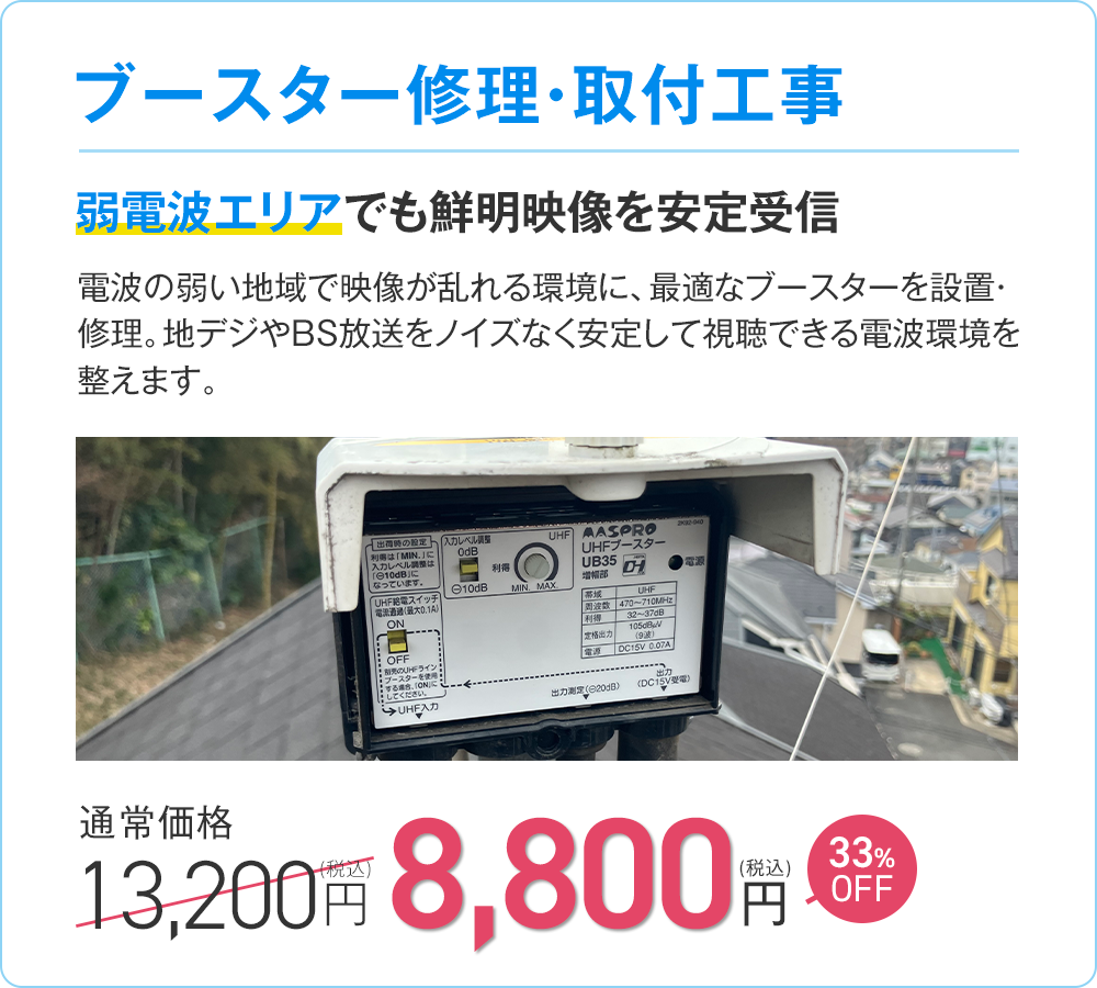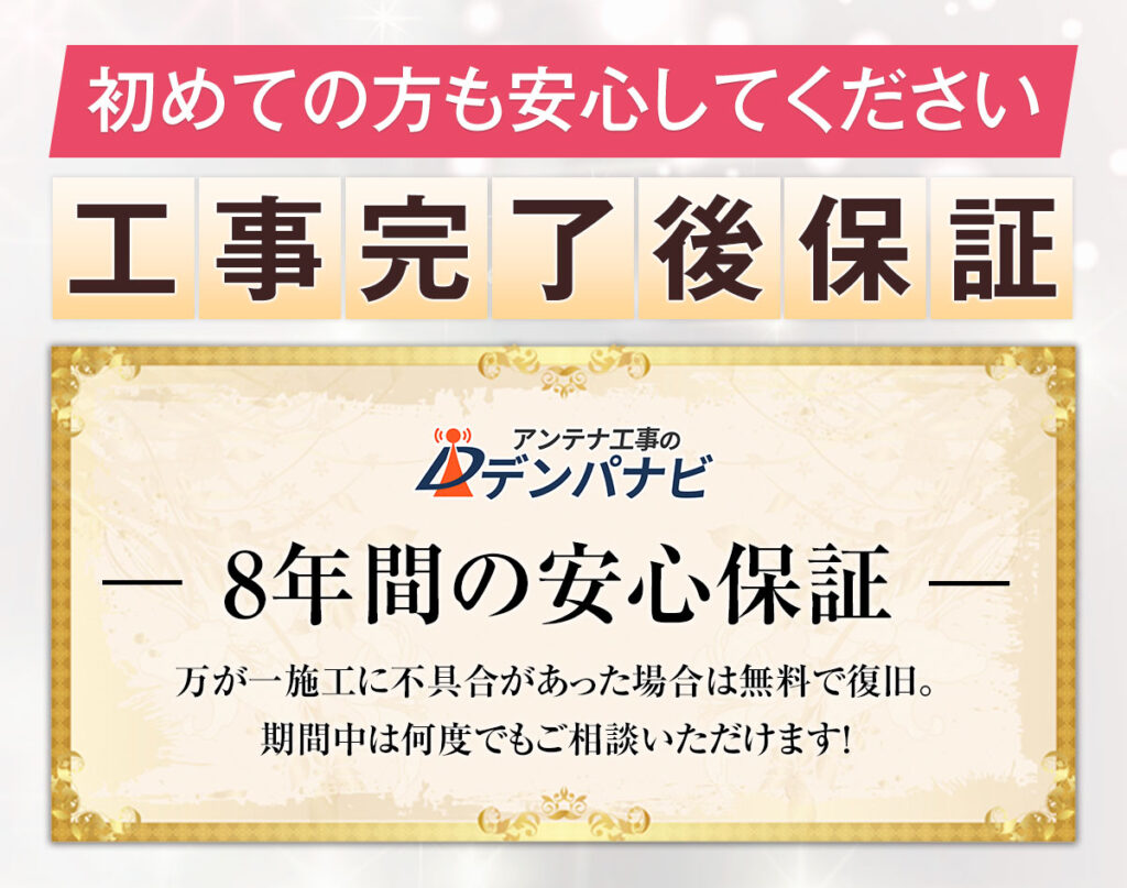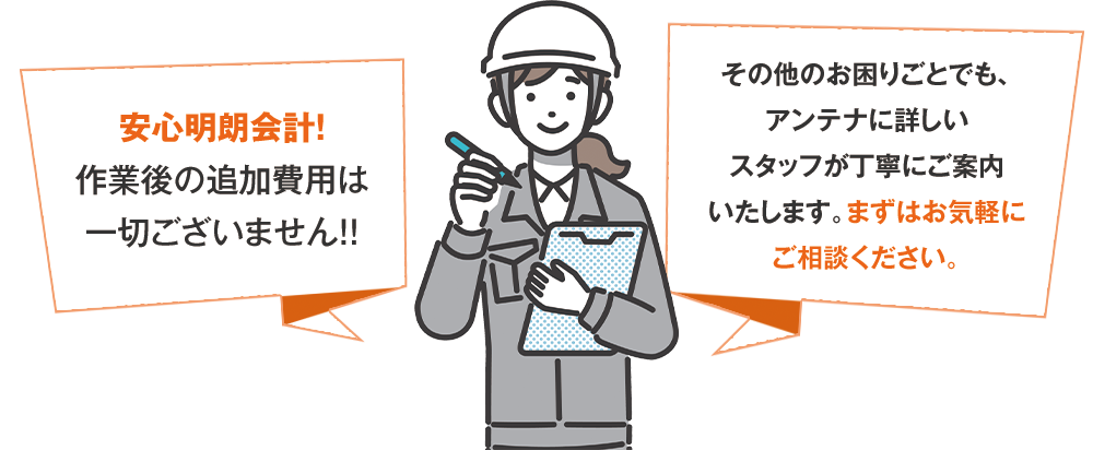 施工後のアフターフォローや「無料点検」も充実しており、大切なお住まいの電波トラブルを、安心してお任せいただけます。どんな小さなご相談でも『頼んでよかった』と、心から思っていただける対応をお約束いたします。