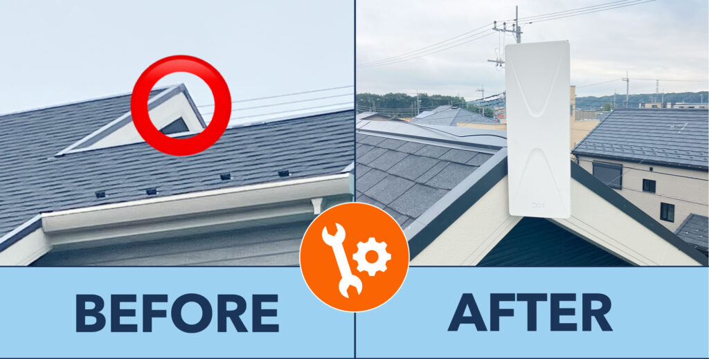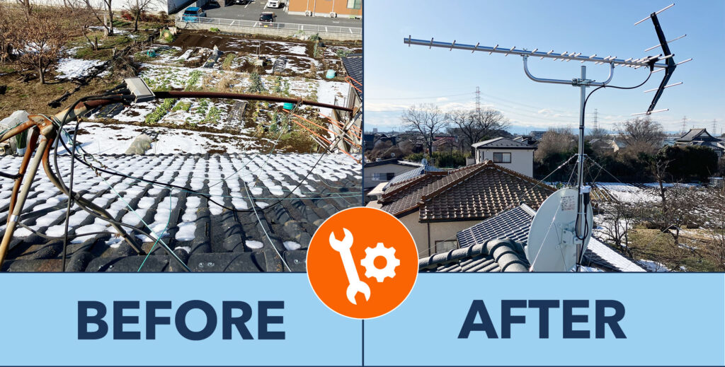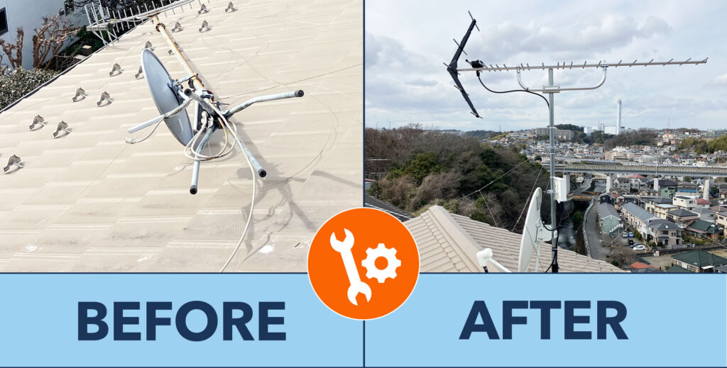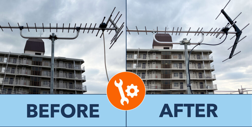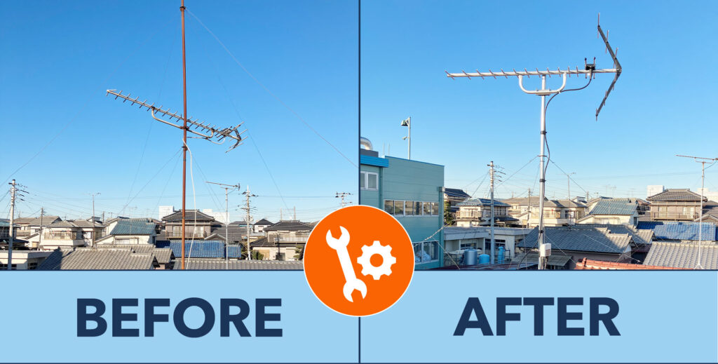 アンテナが古くて電波が安定しないのでアンテナを交換してほしい、とご連絡をいただいたお客様。点検の結果アンテナに経年劣化が見られたので、当初のご要望通りアンテナを交換し、無事電波も安定しました。